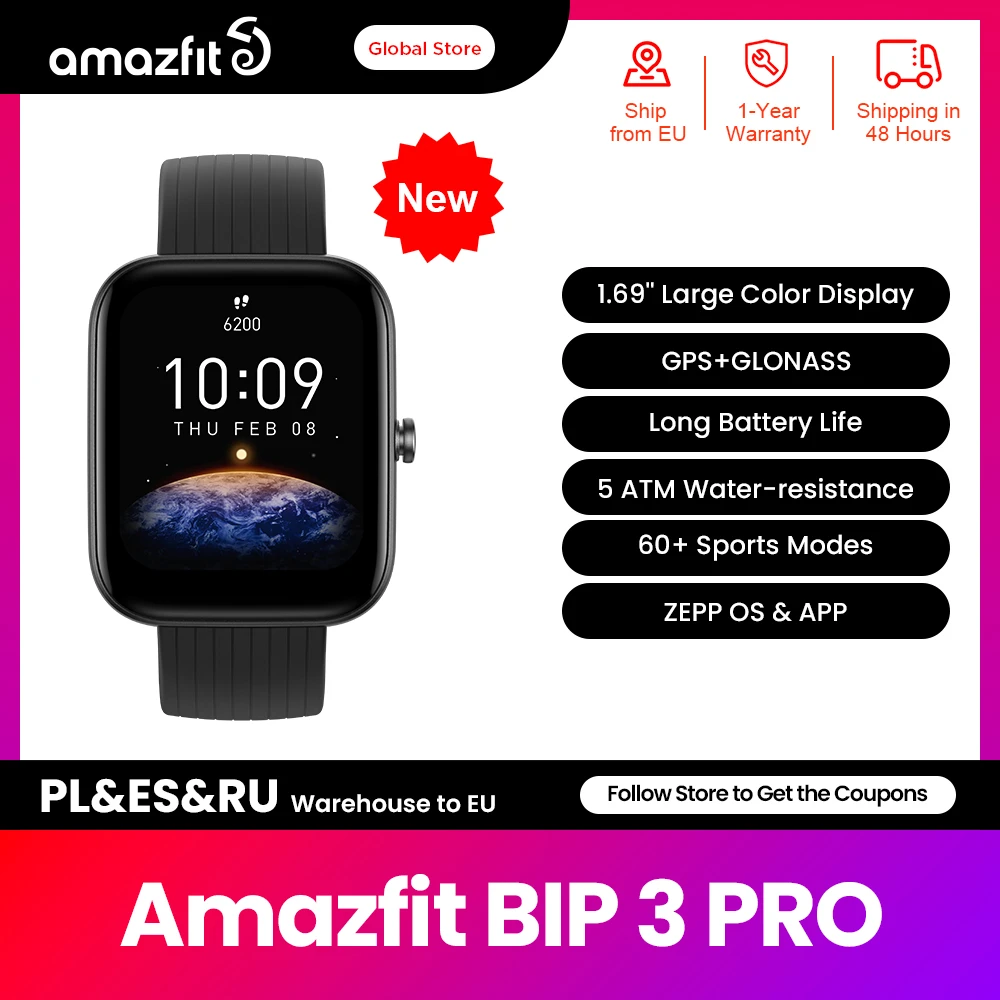 [World Premiere] Amazfit Bip 3 Pro Smartwatch 60+ Sports Modes 5 ATM Water-resistance GPS Smart Watch For Android IOS Phone