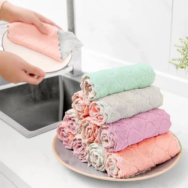 Kitchen Cleaning Strong Absorbent Fiber Dish Towel 10p Kitchen Thickened Coral Fleece Household Scouring Pad Non-Sticky Oil Rag